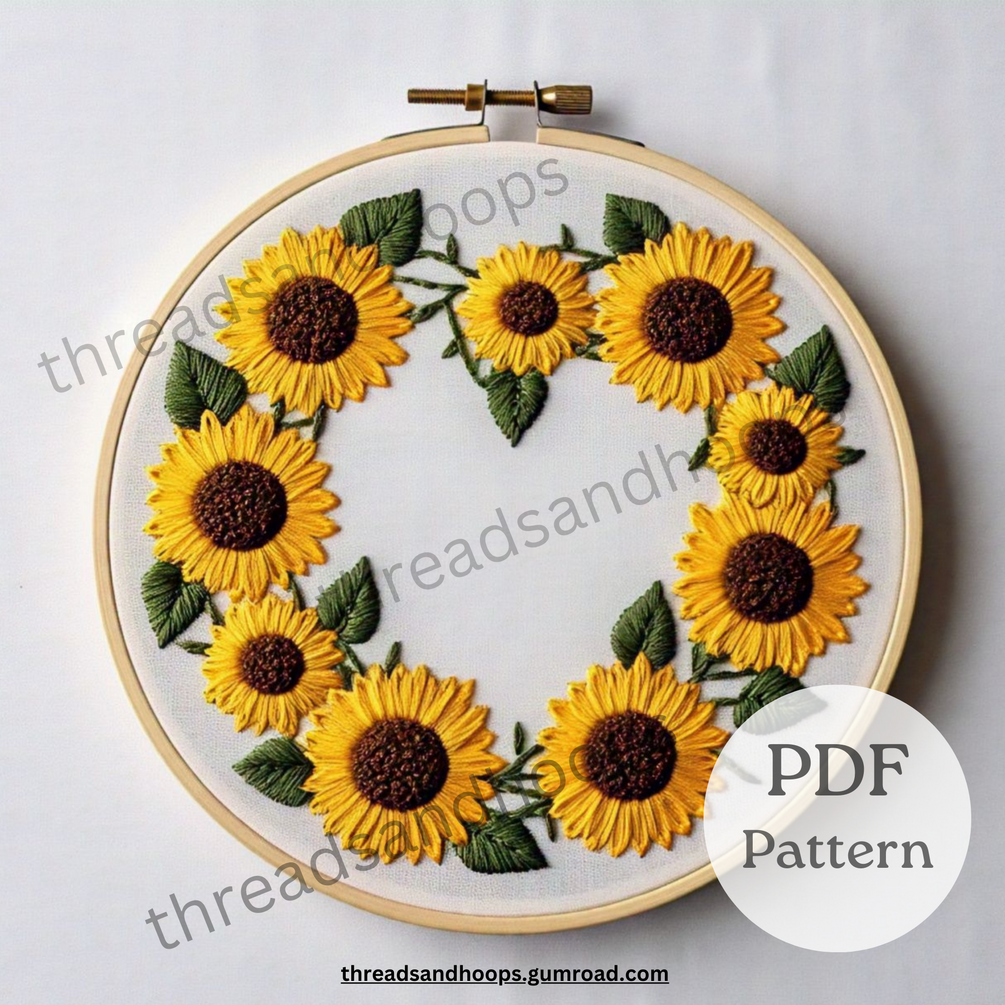 Sunflower Heart Embroidery Pattern, Heart-Shaped Sunflowers Embroidery Design, Valentine Embroidery Pattern, DIY Embroidery Pattern, Gifting Embroidery Pattern.