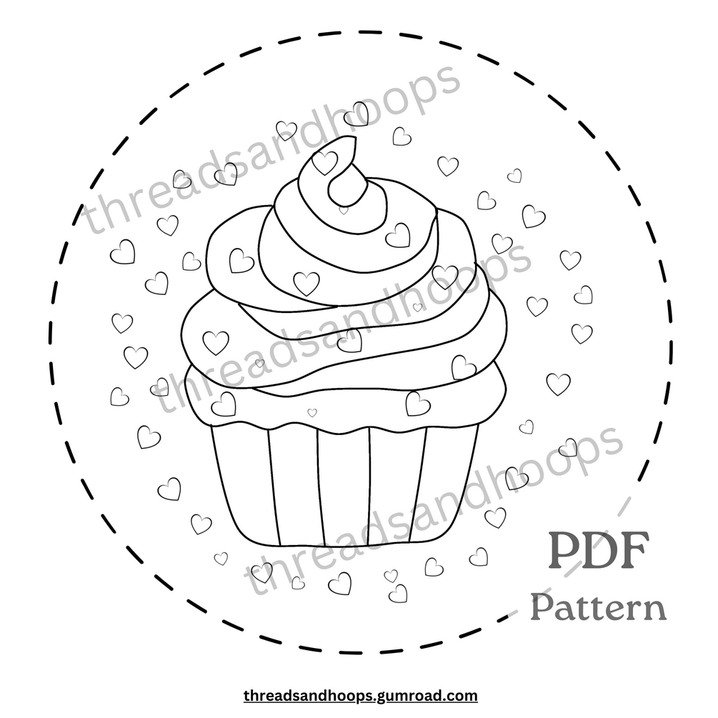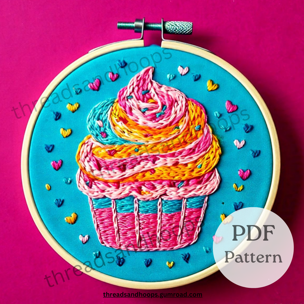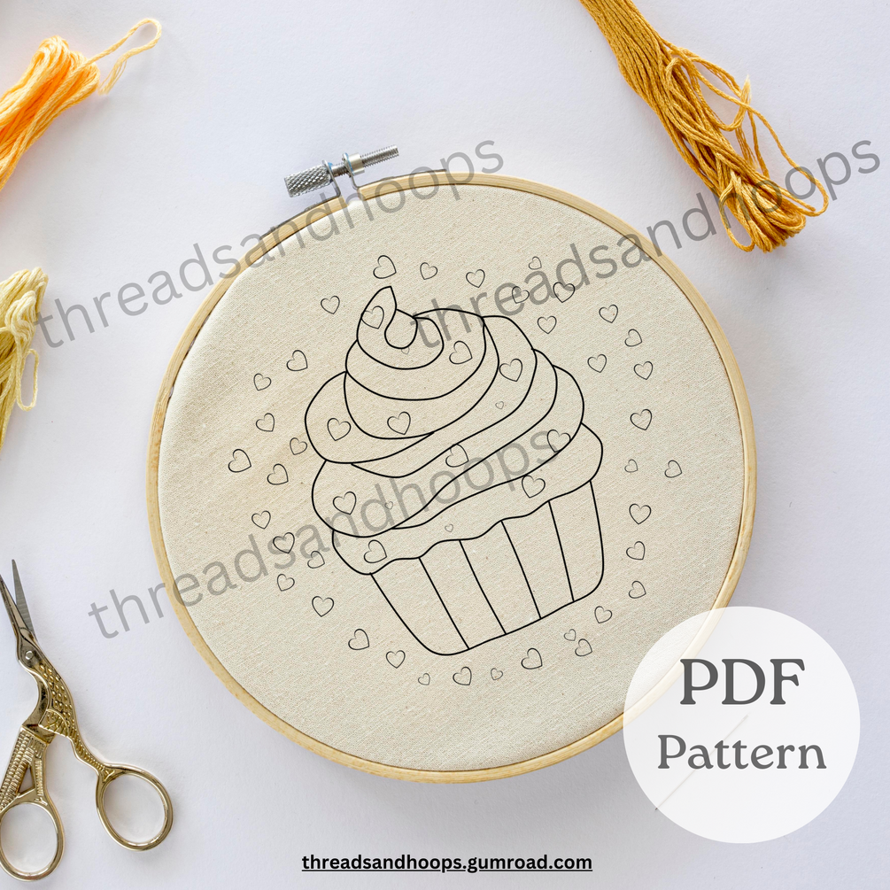 Sweet Cupcake Embroidery Pattern, Heart-Sprinkled Cupcake Embroidery, Whimsical Cupcake Embroidery Design, DIY Embroidery, Crafts, Hand Embroidery Pattern, Digital Embroidery Pattern